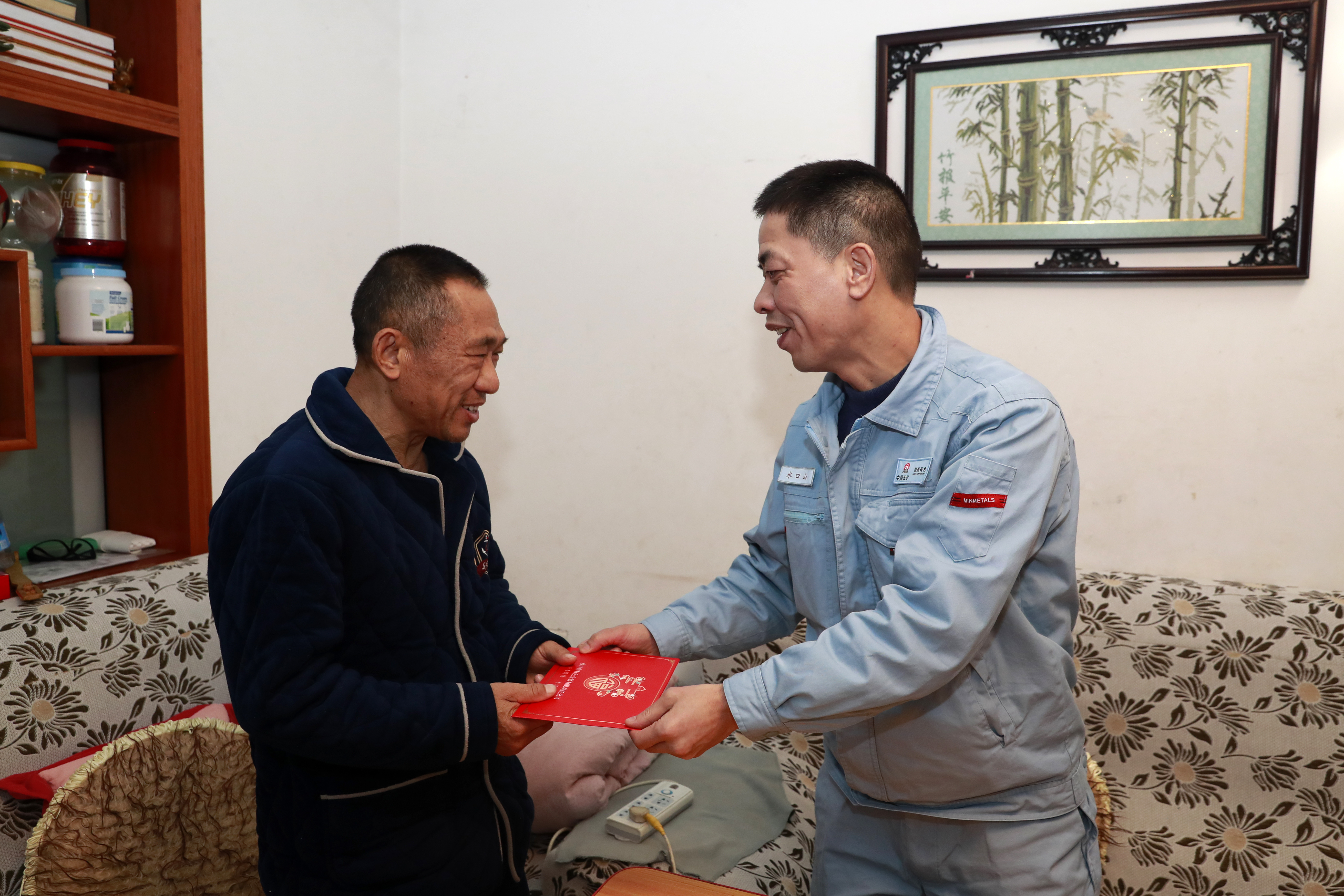 总经理、党委副书记曹晓扬来到退休老领导陈神保家中,与老人促膝交谈,致以新春祝福,并详细介绍公司过去一年生产经营、改革发展的丰硕成果。他说,老一辈水口山人的拼搏奉献,为企业发展筑牢根基,希望老领导们一如既往关心支持公司发展,多提宝贵意见。